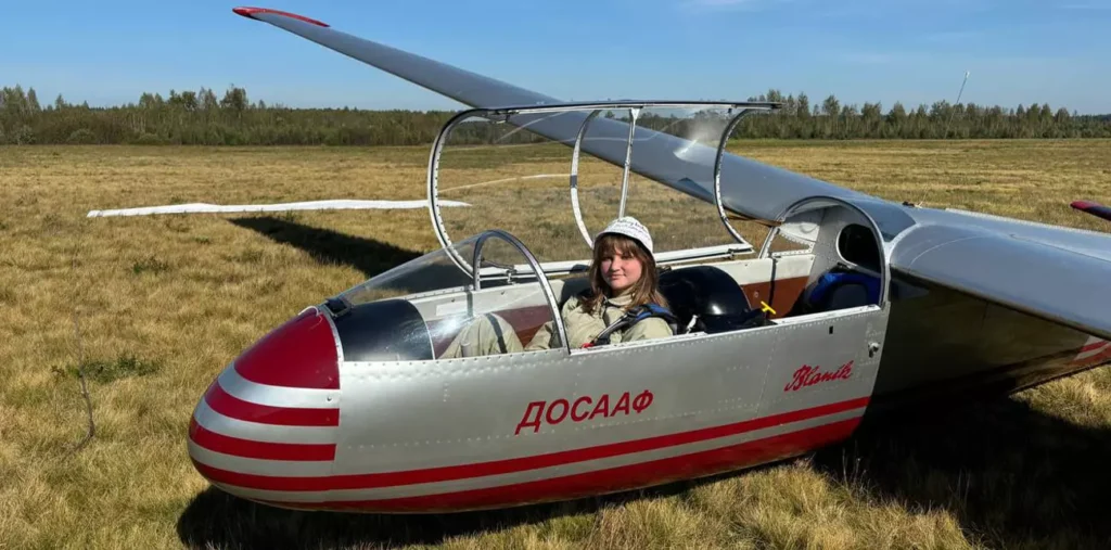 Вероника Гизунова, 16 лет, учащаяся средней школы № 34 г. Бобруйска, успешно завершила первый год обучения в Бобруйском аэроклубе ДОСААФ на учебно-тренировочном планере Л-13 «Бланик» и в 2025 году выполнила нормативы на третий спортивный разряд по планерному спорту. Её общий налёт — 19 часов 5 минут.